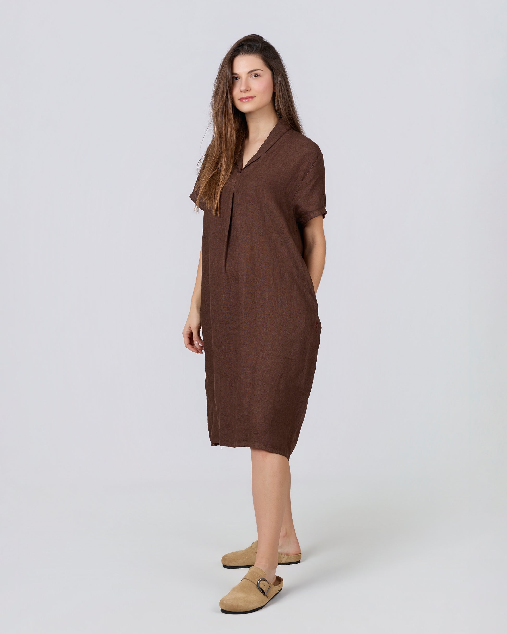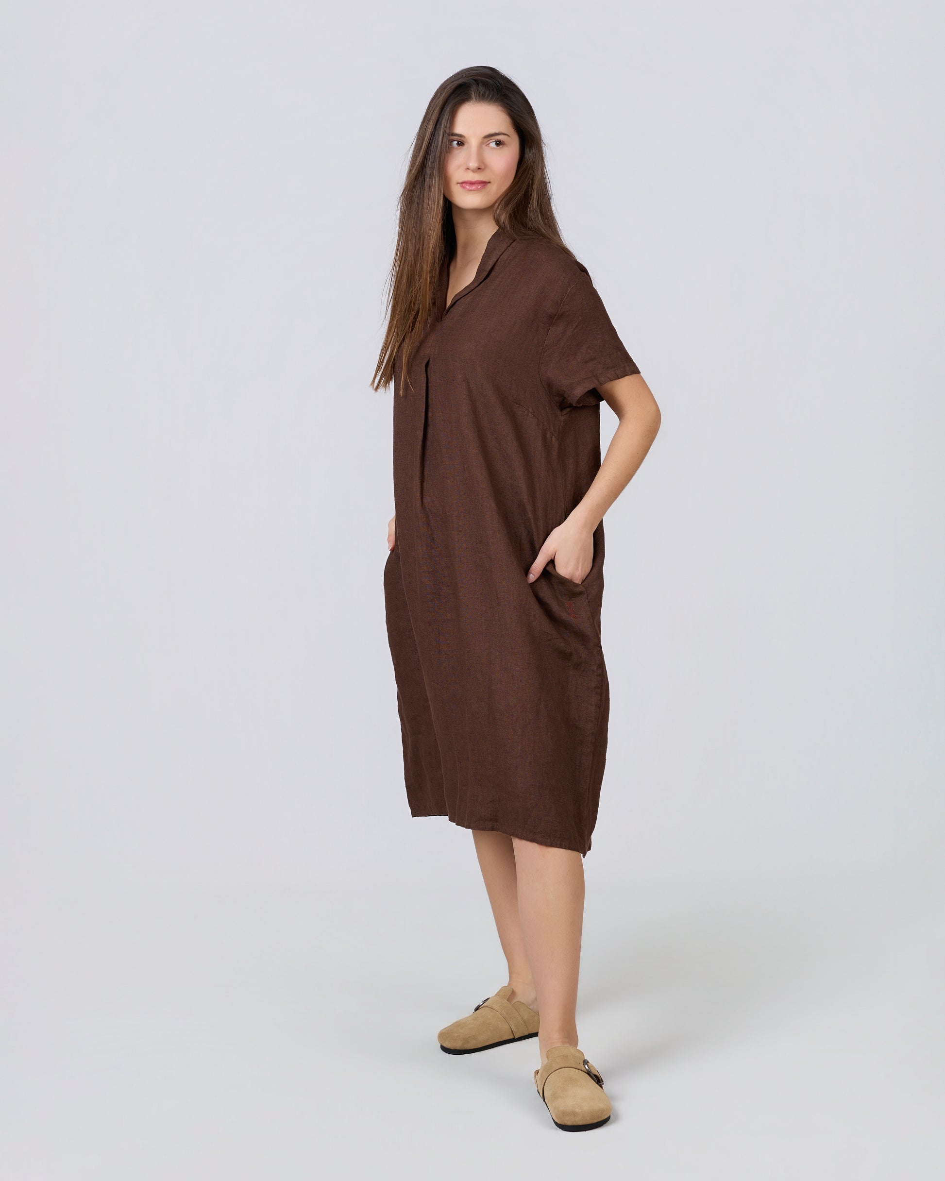 CLAY 100% Linen Midi Dress with Darts