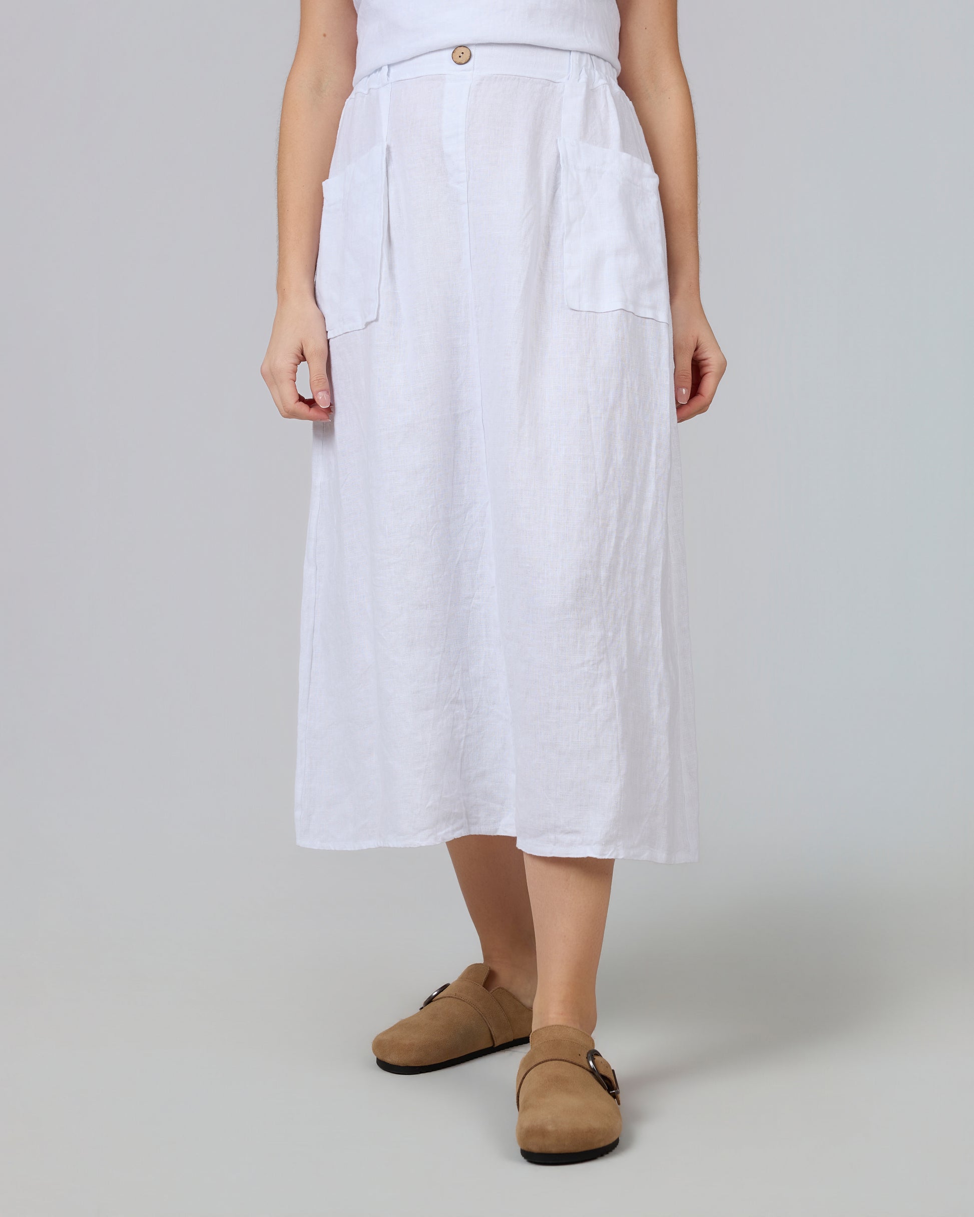 LIA 100% Linen White Long Skirt